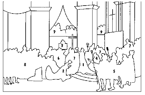 e) Qualissu hè u parsunaghju di u cleru raprisintatu ? (4) È comu ?
